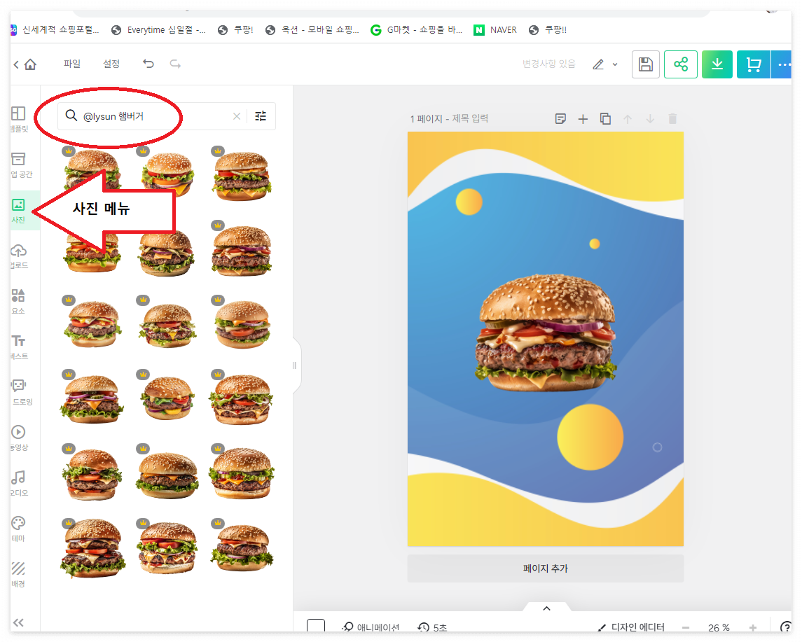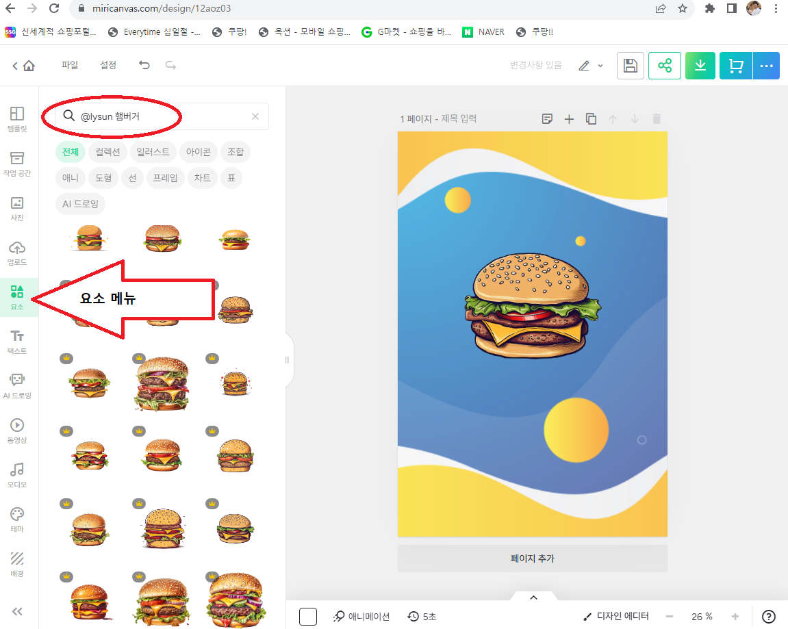 미리캔버스에 접속하셔서 사진 메뉴에 @lysun 햄버거 를 검색하시면 아래와 같이